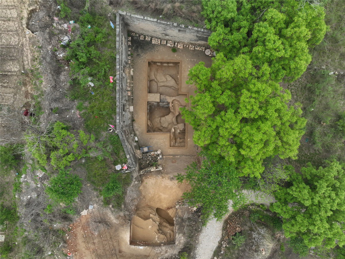 Aerial view of two excavation zones at the porcelain kiln site in Chencun village