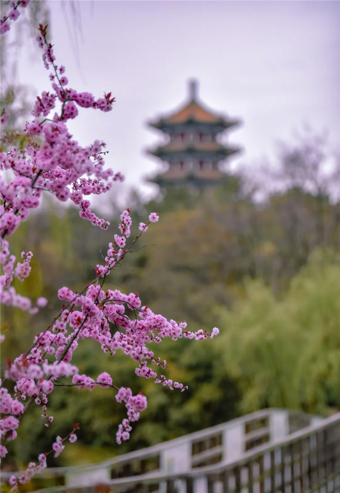 In spring, Licang Cultural Park is filled with lush trees, mirror-like azure waters, and spectacular blossoms. [Photo/WeChat account: qd12301]