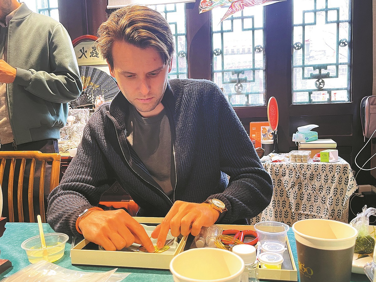 He was especially impressed by a culturally immersive experience at the temple, where he learned about traditional Chinese architectural oil painting, and tried techniques such as the gilding and decorative application of gold powder to the surface of a painting.