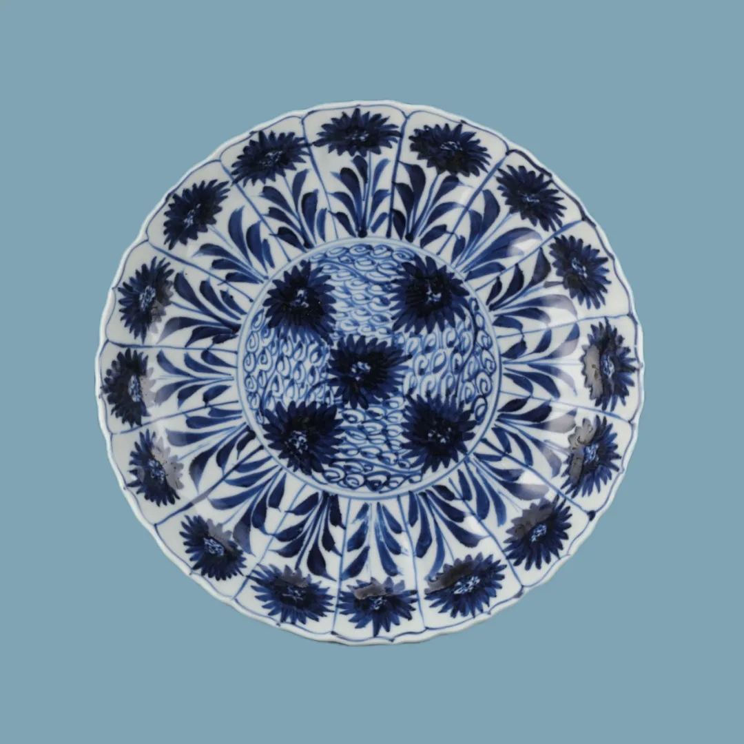 Blue-and-white plate with floral motifs, Kangxi reign (1662-1722) of the Qing Dynasty (1644-1911) [Photo/Official WeChat account of the Zhenjiang Museum]