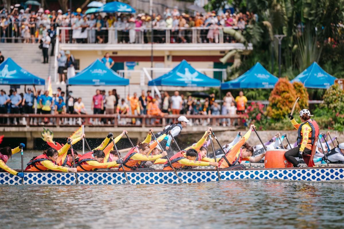 A dragon boat race with more than 300 contestants from 12 renowned teams took place on Thursday in Sanya's Yazhou district. [Photo provided to chinadaily.com.cn]