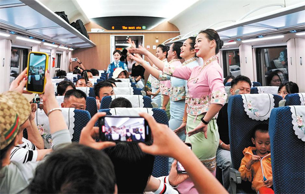 The China-Laos Railway's international passenger trains connect tourist destinations such as Kunming and Xishuangbanna in Yunnan, and Luang Prabang and Vientiane in Laos. The service has played a major role in facilitating international tourist travel to cultural relic sites and natural scenic areas along the route, the company said.