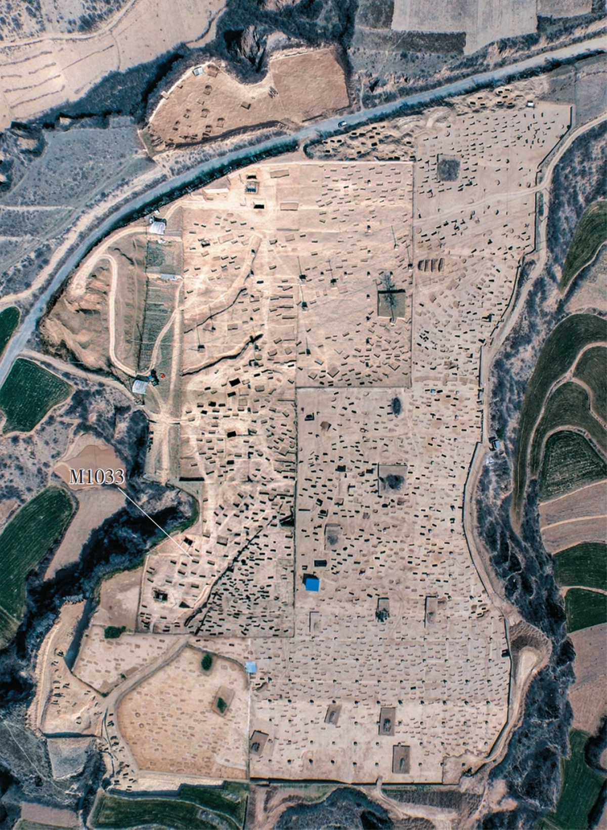 An aerial view of a tomb at the Dahekou Cemetery of the Western Zhou Dynasty in Yicheng county of Linfen city, Shanxi province. [Photo provided to chinadaily.com.cn]