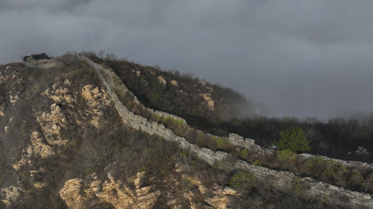 A drone recently captured images of the mist covering the Hongshankou section of the Great Wall. In the early morning, mist rose along the Great Wall after rainfall, creating a mystical scene for tourists.