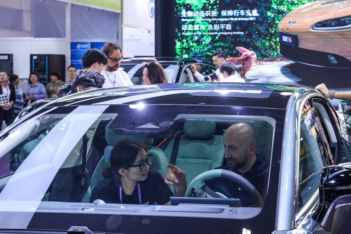 Visitors learn about China's new energy vehicles during the 135th session of the China Import and Export Fair in Guangzhou, Guangdong province on April 15, 2024. [Photo/Xinhua]