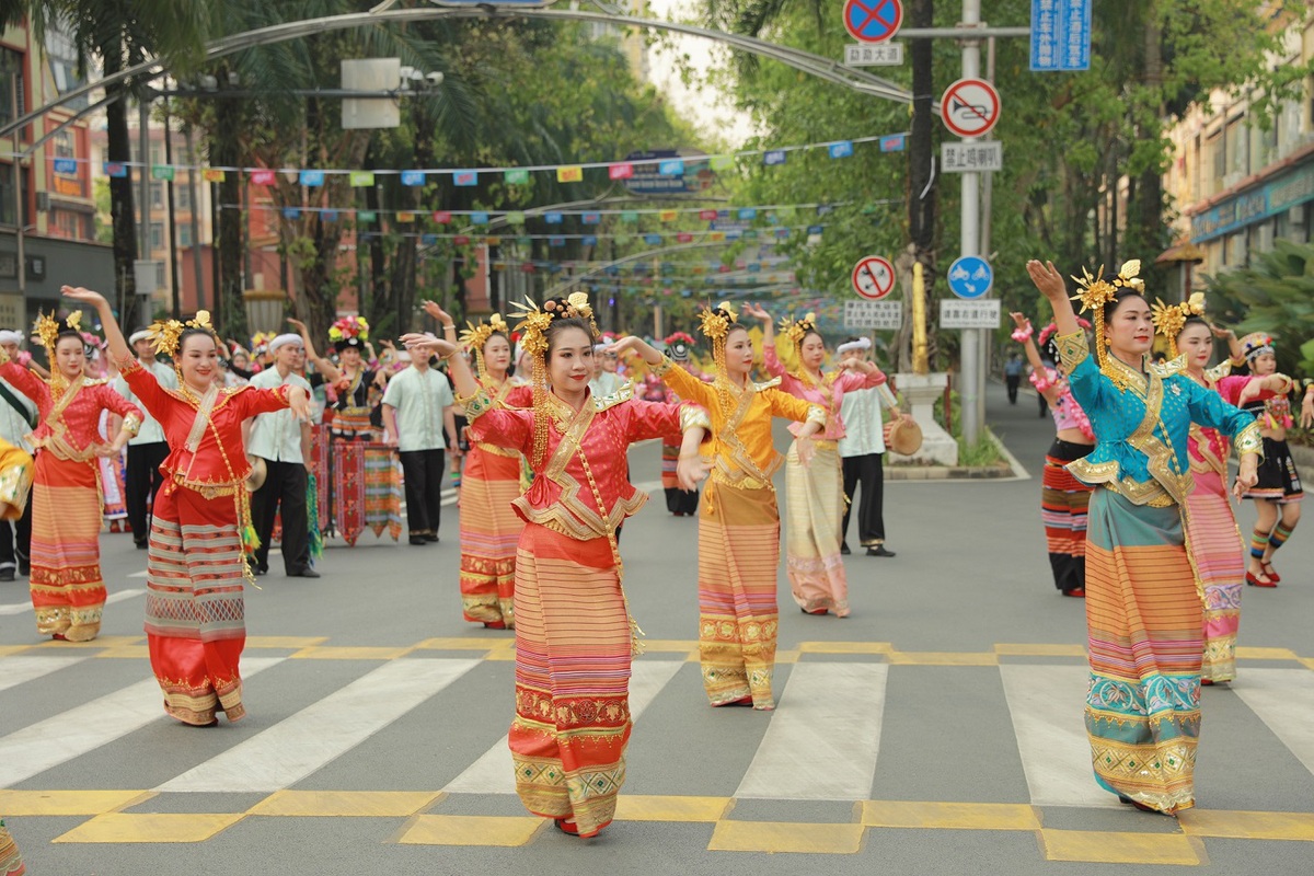 People participate in traditional folk cultural events in Jinghong city, Southwest China's Yunnan province, April 14, 2024. [Photo by Lin Xi/For chinadaily.com.cn]
