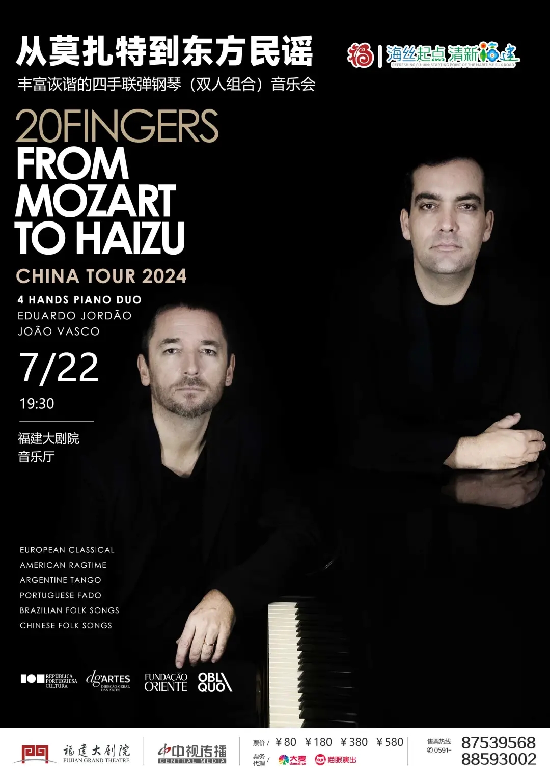 Since its inception in 2007, the dynamic piano duo of Eduardo Jordao & João Vasco has captivated audiences worldwide, blurring genre boundaries and expanding the traditional scope of classical piano recitals. Join us for an evening of rhythm, dance, and humor, at the duo’s concert at the Fujian Grand Theatre on July 22.