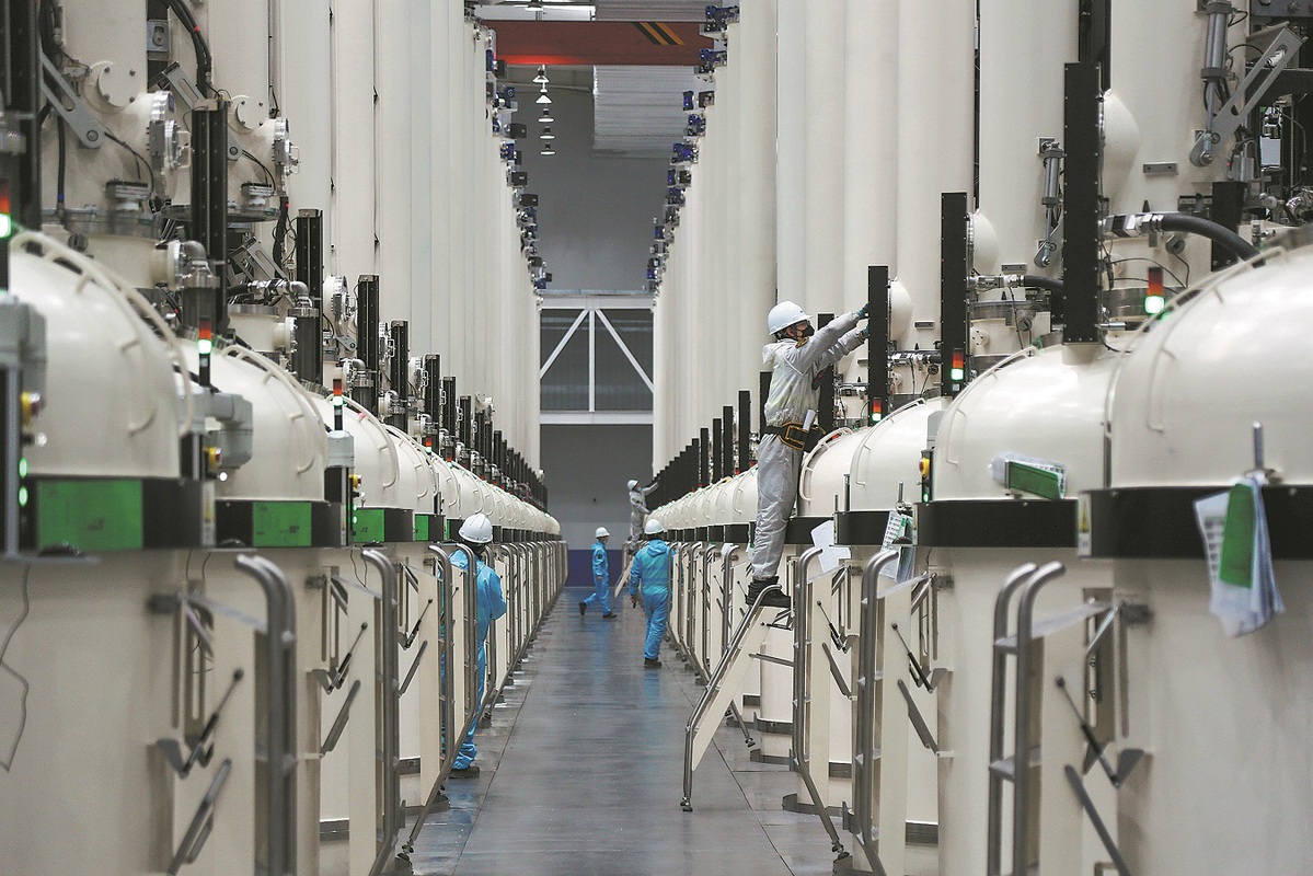 Many top companies in the semiconductor sector have settled in Yinchuan, including Ningxia Zhonghuan Solar Materials Co, which has one of the world's largest monocrystalline silicon smart factories. The company manufactures monocrystalline silicon rods, which can generate 70 gigawatts of solar power annually when the plant is running at its full production capacity.