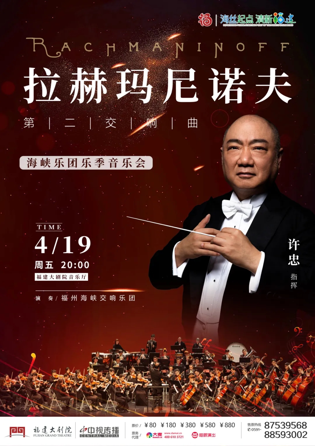 Maestro Xu Zhong will lead the Fuzhou Strait Symphony Orchestra in a heartfelt performance of Rachmaninoff's Symphony No 2. Catch it on April 19, at 20:00 in the Music Hall of the Fujian Grand Theatre. Don't miss this unforgettable experience!