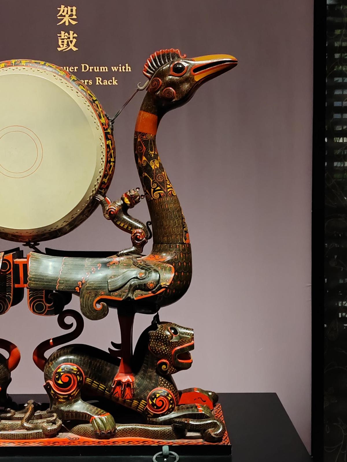 Check out this black-lacquered drum with bird-and-tiger-shaped racks, one of the top ten treasures of the Hubei Provincial Museum epitomizing rich Chu cultural features! Alongside it, bronze ware from the Shang and Zhou dynasties (c.16th century-256 BC) and wooden or bamboo slips from the Qin and Han dynasties (221 BC-AD 220), as well as gold and jade ware dating back to the Ming Dynasty (1368-1644) vividly illustrate the unique historical evolution and cultural beliefs of Hubei.