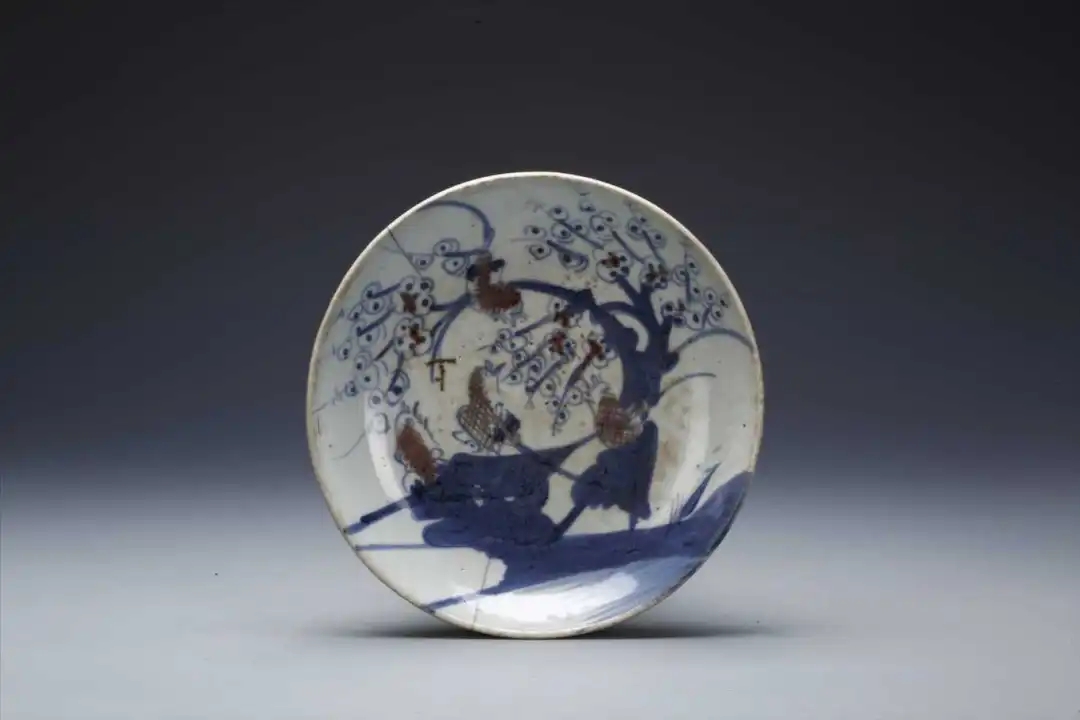Blue-and-white plate with under-glazed red plum blossom motifs, Qing Dynasty [Photo/Official WeChat account of the China Museum of Southern Water Town Culture]
