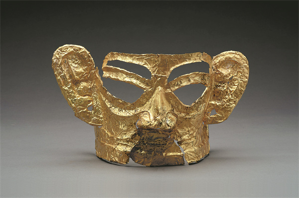 A giant gold mask from Sanxingdui.[Photo provided by the Shanghai Museum and the Sanxingdui Museum]