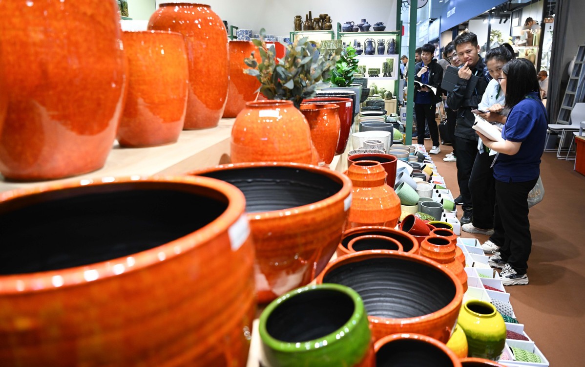 This photo taken on April 23, 2024 shows a booth of pottery and porcelain at the second phase of the 135th Canton Fair in Guangzhou, South China's Guangdong province. [Photo/Xinhua]