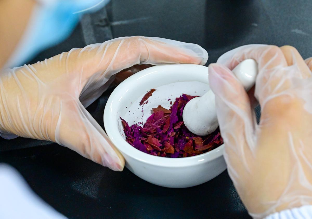 A researcher is cultivating the 3-carat diamond sourced from red peonies in Luoyang, Henan province. [Photo by Dong Gefei / for chinadaily.com.cn]
