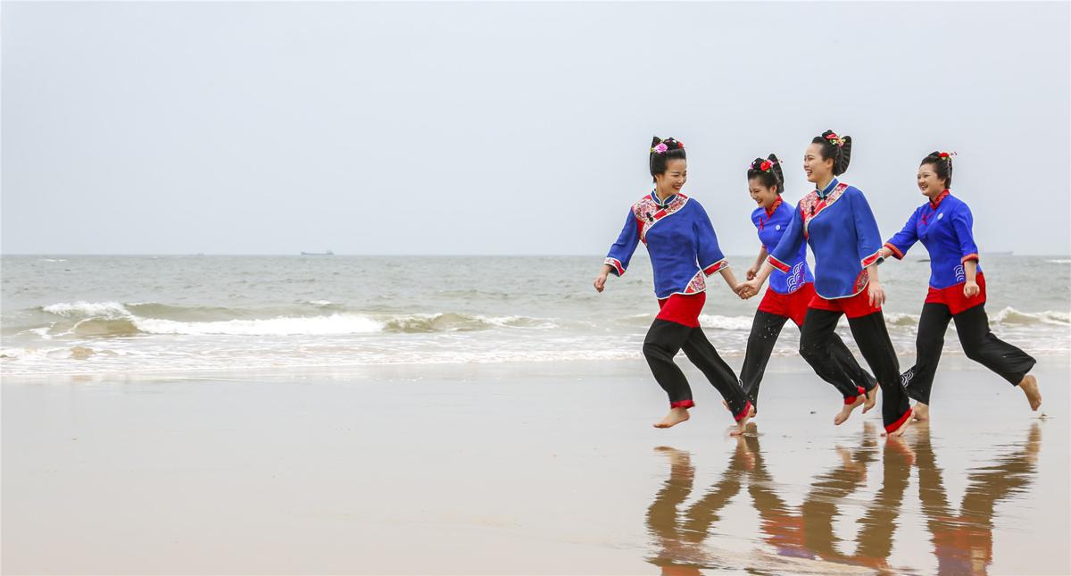 The traditional attire and headdress of the women of Meizhou Island in Putian, Fujian province, is a provincial intangible cultural heritage. [Photo by Lin Chunsheng/for chinadaily.com.cn]