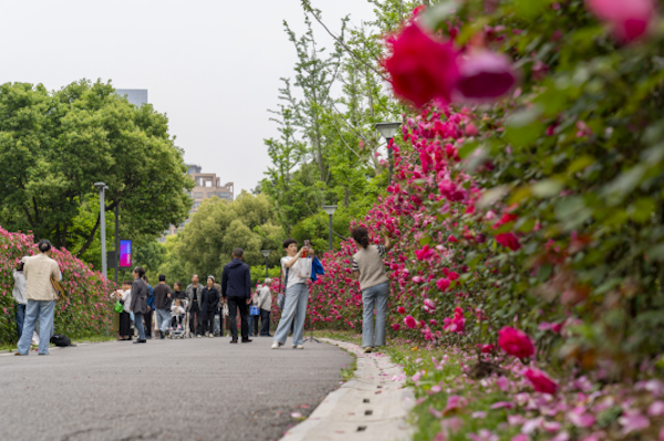 In recent days, the rose garden at Yangfushan Park in Wenzhou, Zhejiang province has become a picturesque paradise, with various types of roses in full bloom drawing crowds of residents.