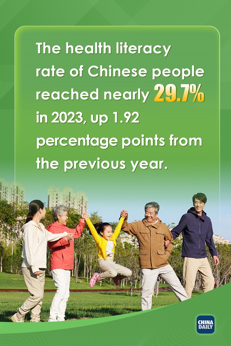 According to the National Health Commission on Wednesday, China's health literacy has steadily risen in 2023. Here are some highlights.