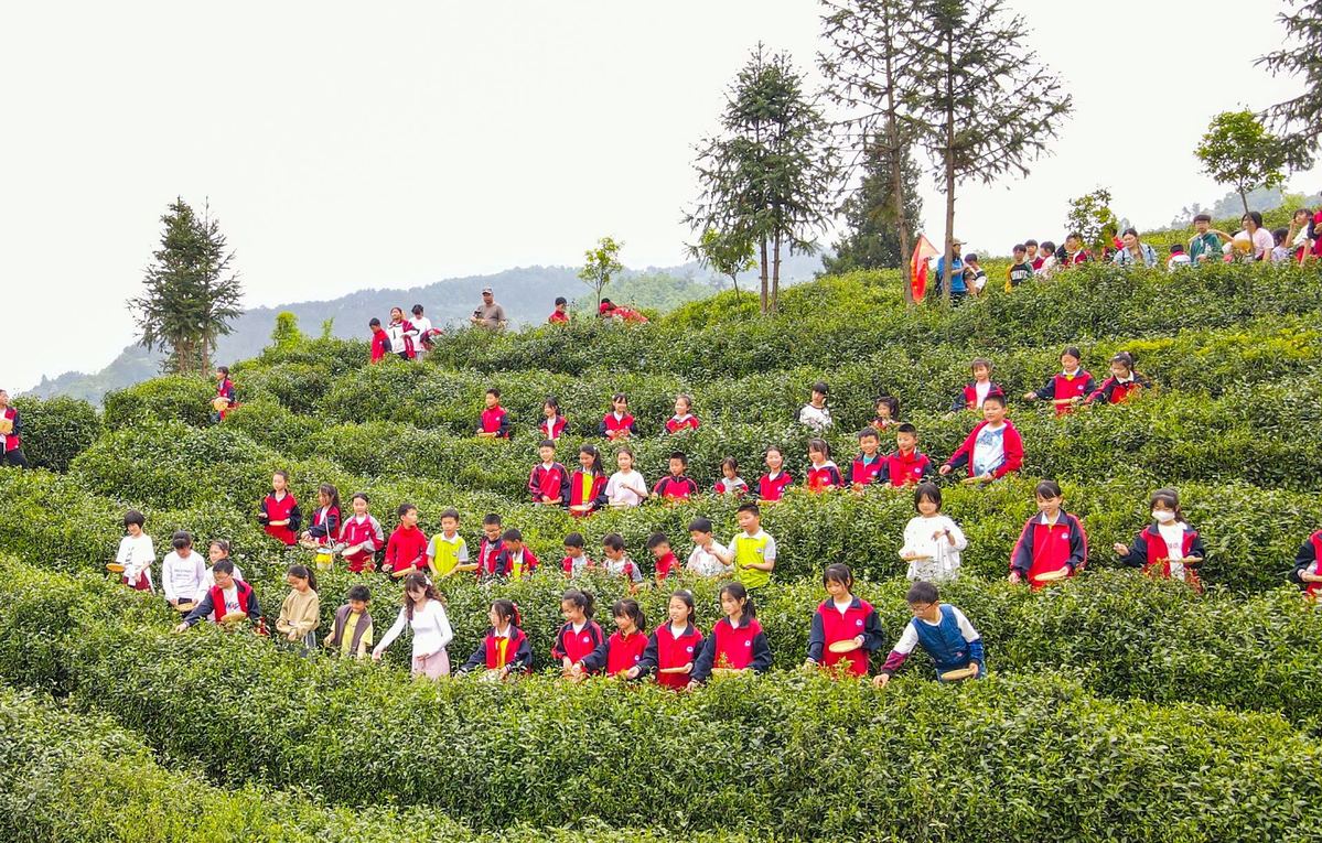 At Yuhuangjian Tea Expo Park in Wushan town, Gucheng county, Xiangyang, Hubei province, a group of elementary school students recently embarked on an educational adventure! They got hands-on experience with tea picking and brewing, while also studying the art and techniques of tea culture.