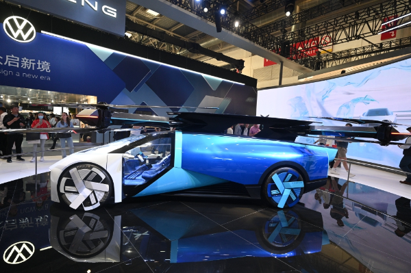 An Xpeng's flying car is displayed at the 2024 Auto China in Beijing on April 25, 2024. [Photo/VCG]