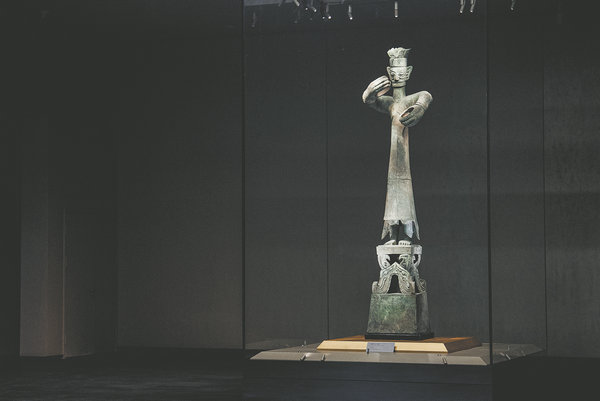 What was the man holding? This is an inevitable question for anyone who has ever looked up to the famous bronze standing man, unearthed from a pit in Sanxingdui, an archaeological site located in Guanghan city, southwestern China's Sichuan province. During its heyday between 1600 and 1100 BC, Sanxingdui was capital to the ancient kingdom of Shu — Shu being a modern byword for Sichuan — which built around itself a prosperous Bronze Age civilization that dominated the Upper Yangtze River region.