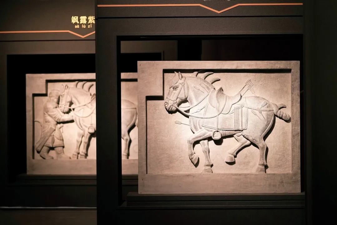Replicas of the stone carvings of horses from the tomb of Emperor Taizong of the Tang Dynasty [Photo/Official WeChat account of National Museum of Classic Books]