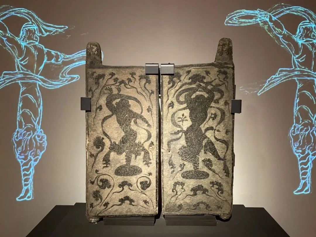 Stone tomb doors with Sogdian whirl dance carvings [Photo/Official WeChat account of National Museum of Classic Books]