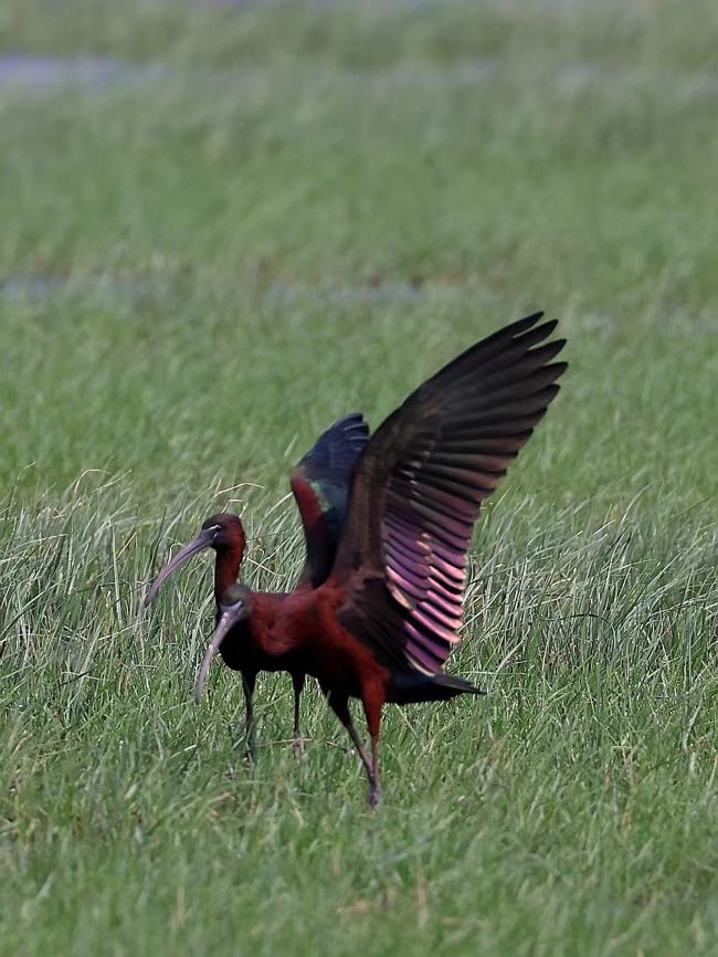 Glossy ibises make their debut appearance in Haiwei National Wetland Park in Changjiang Li autonomous county, Hainan province on April 27. [Photo by Xue Meili/for chinadaily.com.cn]
