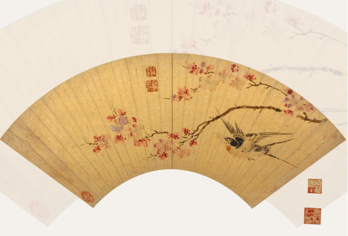 A fan painting of peach blossoms and a swallow, Lu Zhi (1496-1576), Ming Dynasty (1368-1644) [Photo/Official WeChat account of the Fujian Museum]