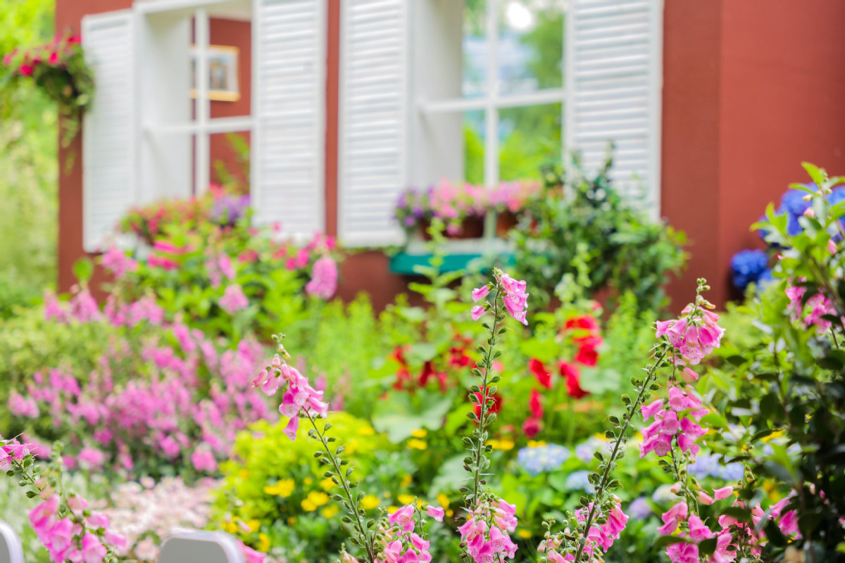 Chinese-style gardens combine fragrant plants with cool-colored flowers and water rock landscapes in limited space.