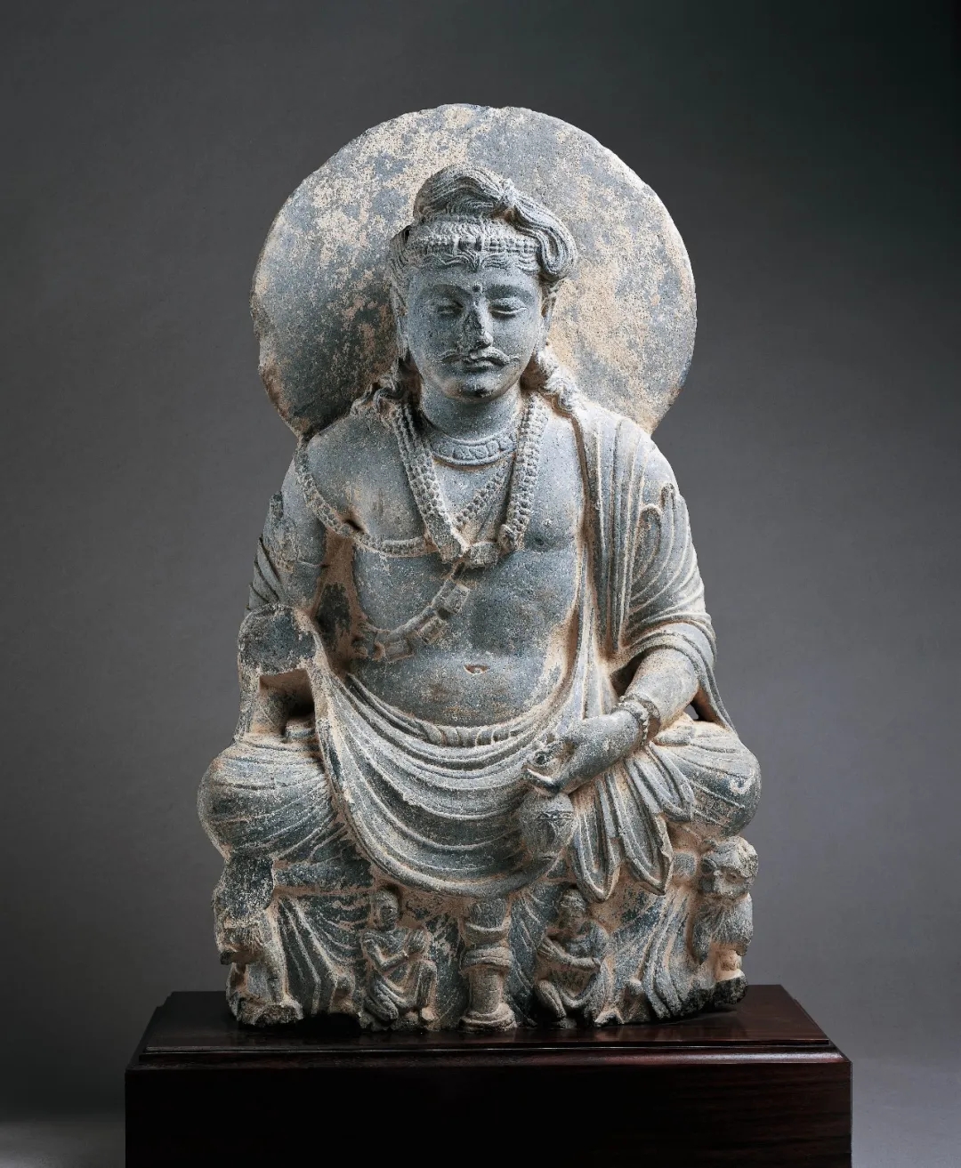 Stone statue of the seated Maitreya, 2nd-4th century, Pakistan [Photo/Official WeChat account of the Zhejiang University Museum of Art and Archaeology]