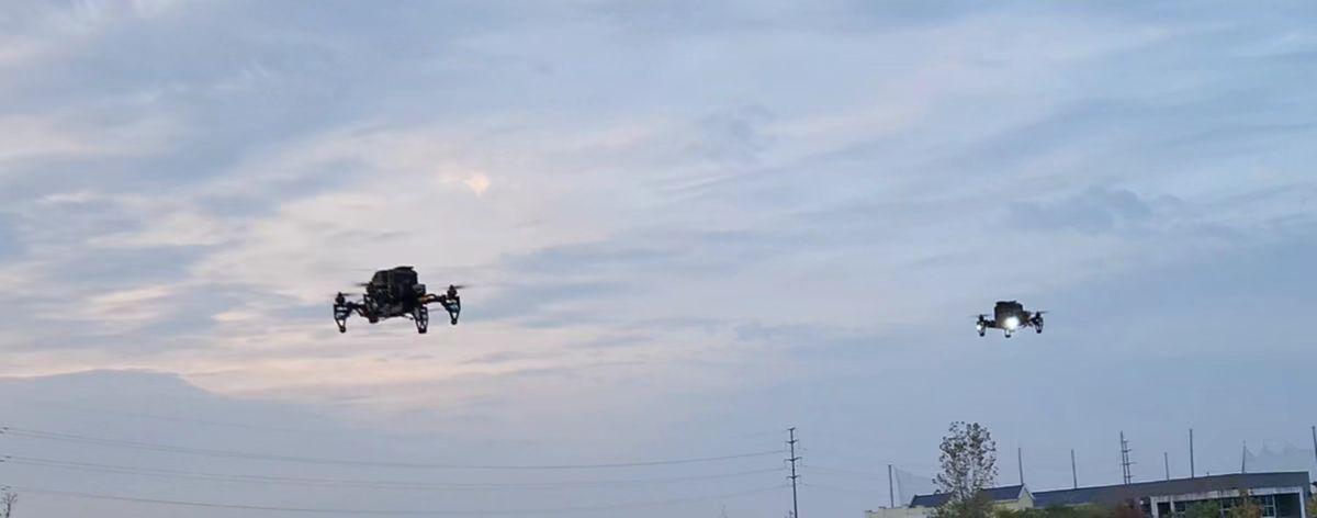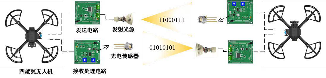 By emitting light signals from lighting devices on one drone and capturing them with light sensors on another drone for intelligent analysis, they achieved short-distance information transmission similar to how fireflies use blinking lights to communicate, enabling collaborative flight between drones based on optical links.