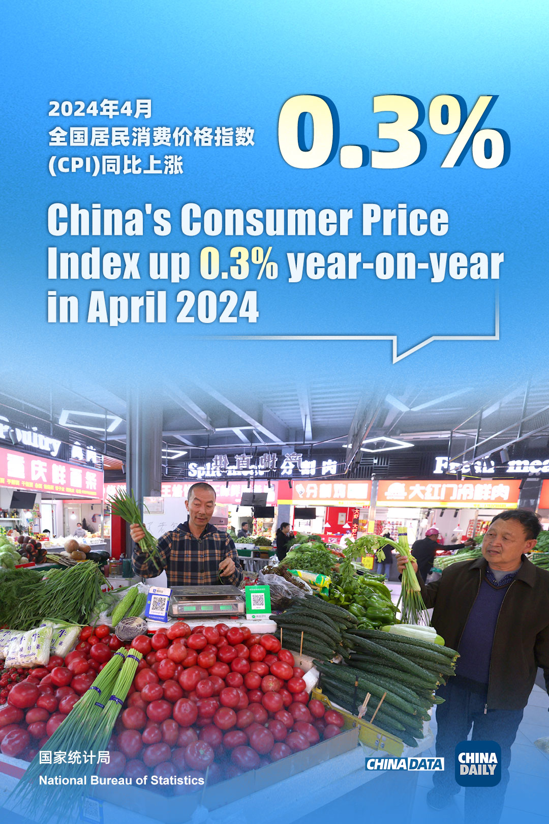 On a monthly basis, the CPI rose 0.1 percent in April, reversing the 1-percent fall from the previous month, said the National Bureau of Statistics.