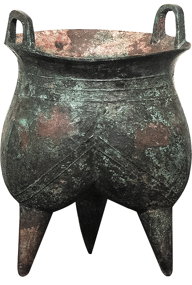 A ding of the Western Zhou Dynasty (c.11th century-771 BC), with an old label stuck to it, stands out among the exhibits.
