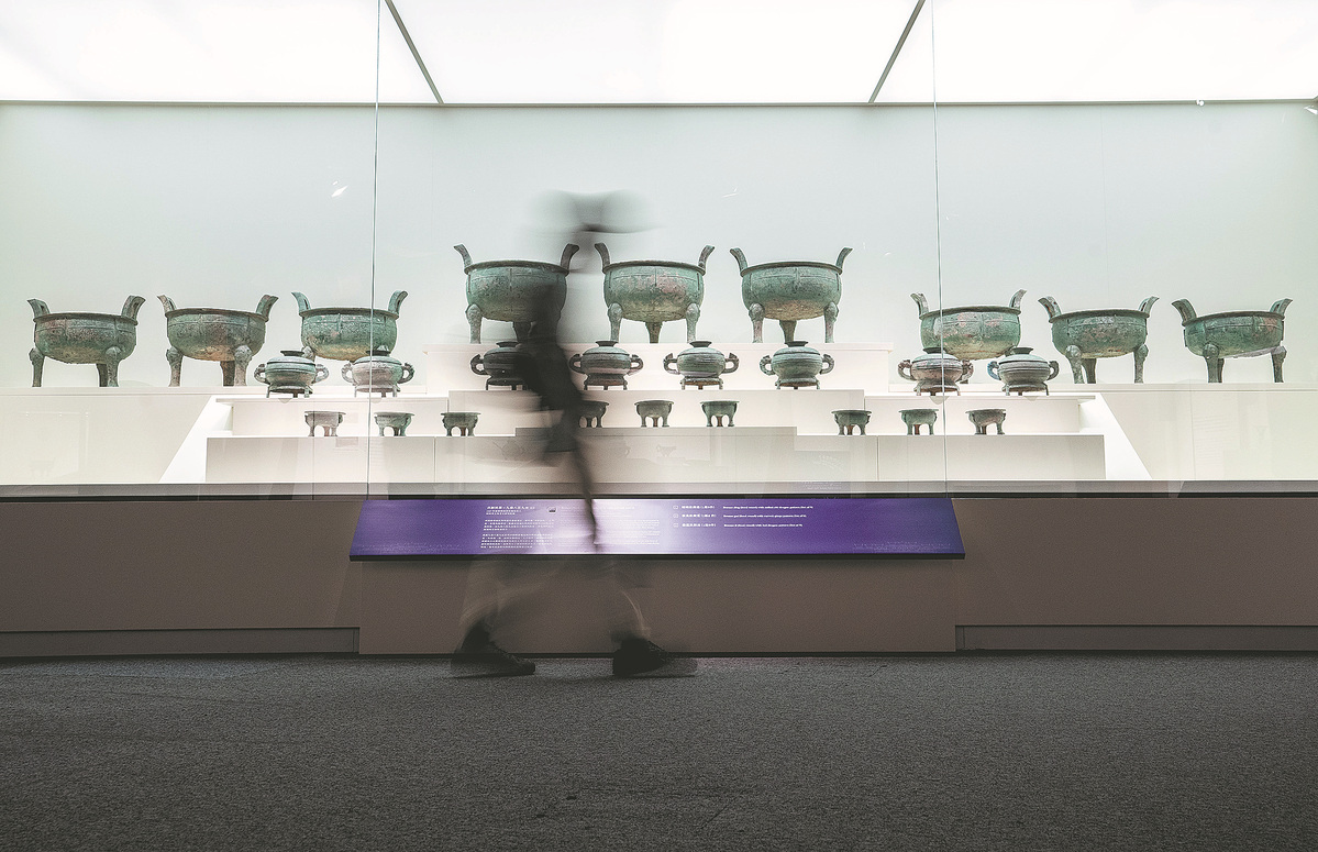 Ritual vessels attract audiences at the exhibition. HOU YU/CHINA NEWS SERVICE/ZHU WEI/XINHUA