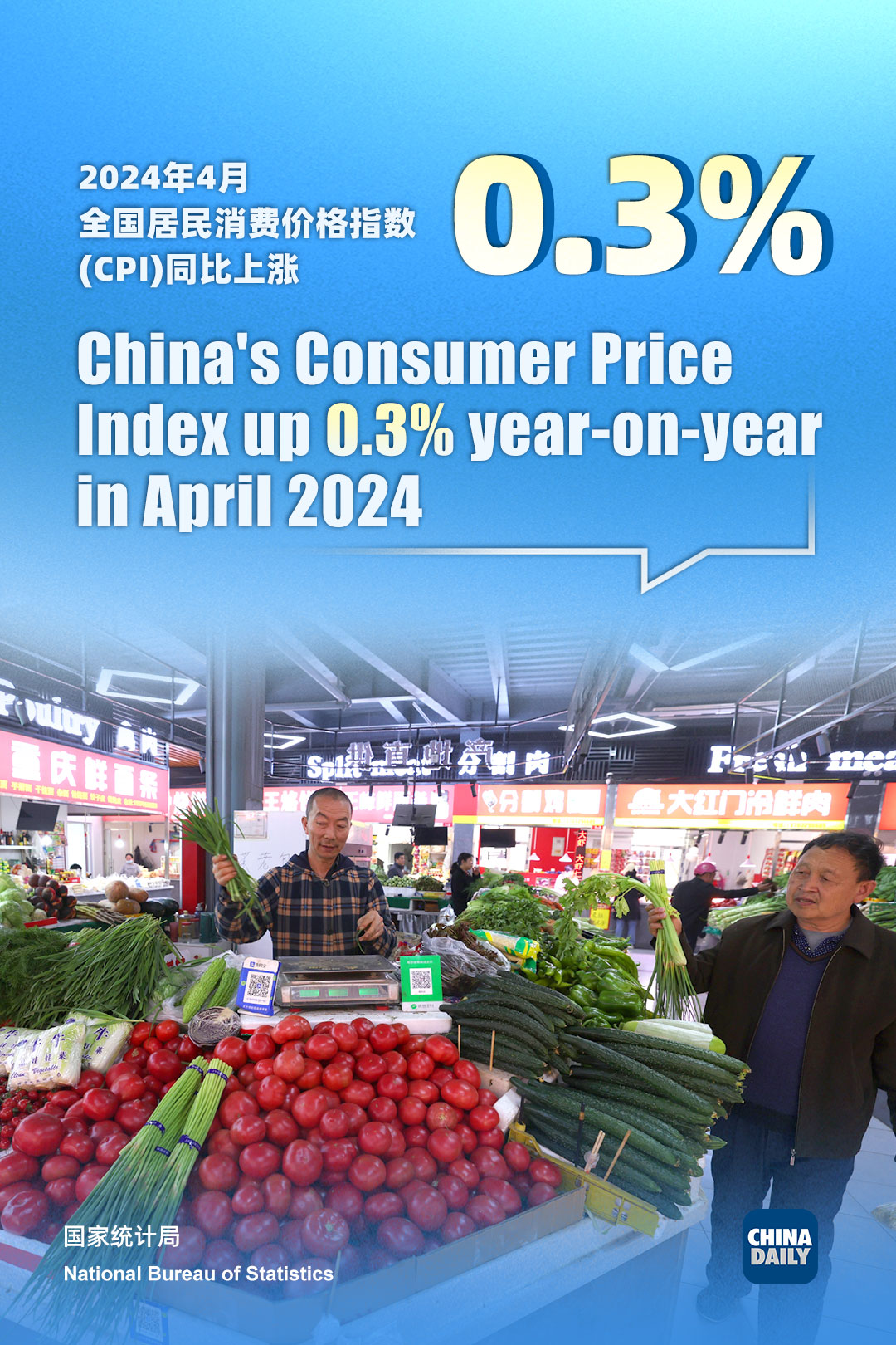 On a monthly basis, the CPI rose 0.1 percent in April, reversing the 1-percent fall from the previous month, said the National Bureau of Statistics.