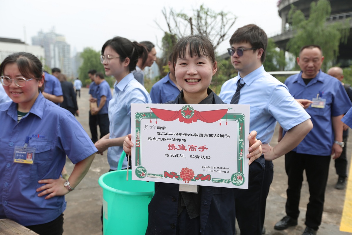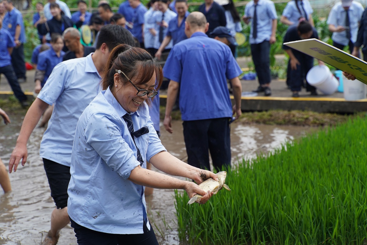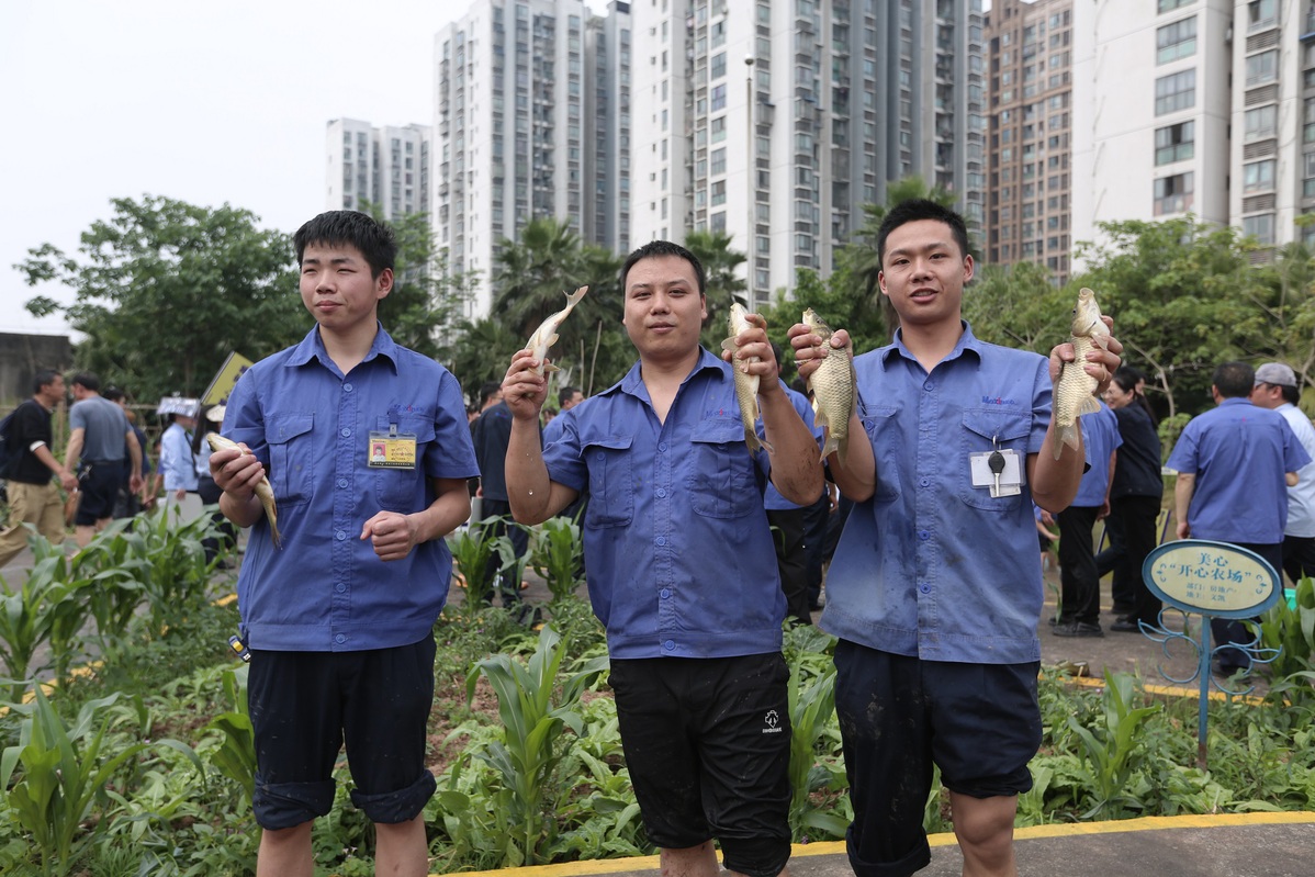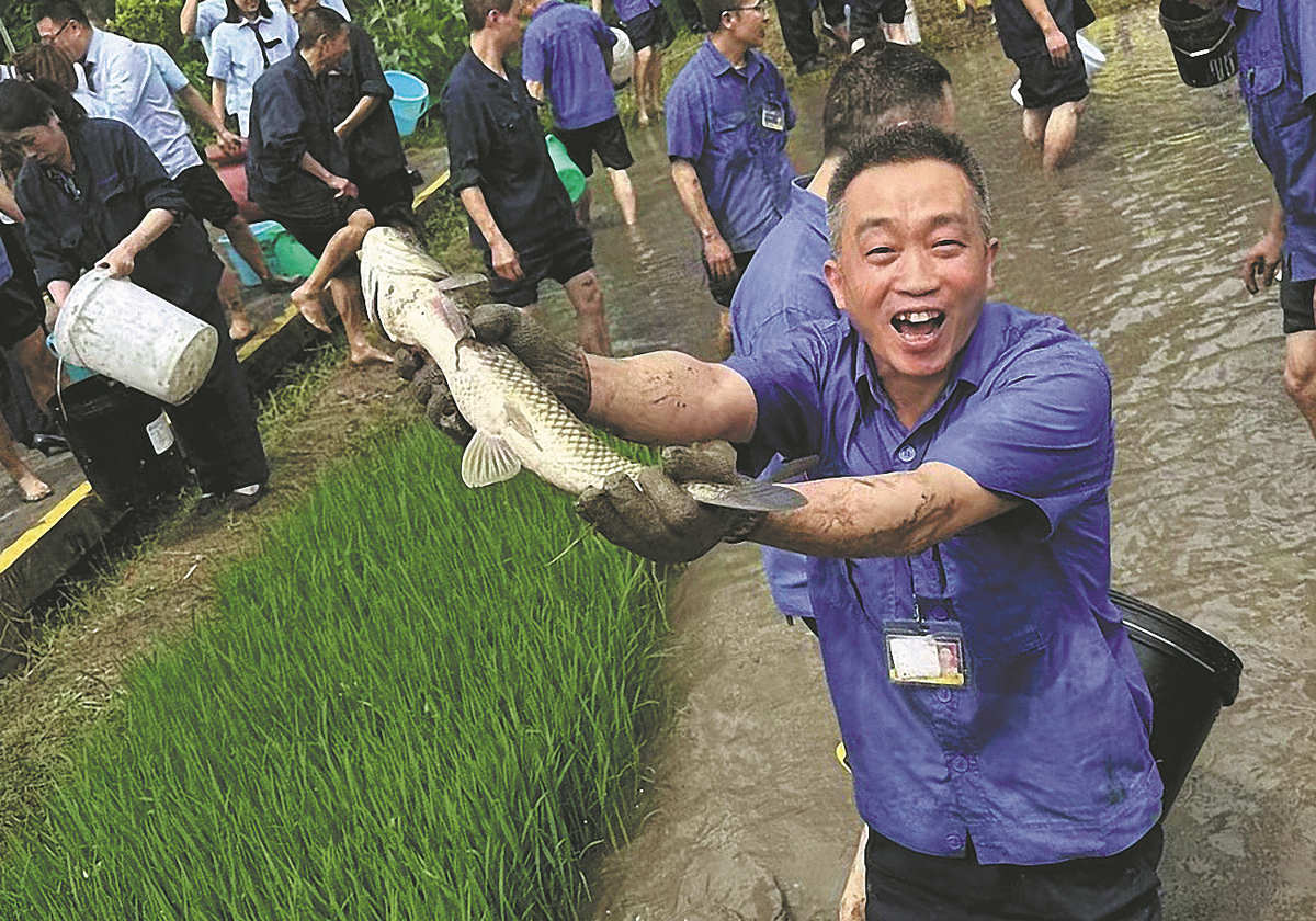 They caught fish and planted rice seedlings 33 meters above the ground at Happy Farm, a 20,000-square-meter ecosystem created by Meixin, a door manufacturer headquartered in Chongqing's Nan'an district. The farm produces crops like rice, rapeseed and lotus root and also features a 1-kilometer artificial river teeming with fish and shrimp.