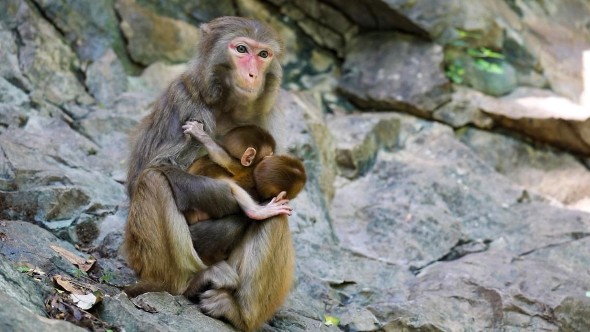 The macaque, listed as a second-level protected species in China, mainly inhabits rocky cliffs, stream valleys or mountains along riverbanks. The precious species often live in groups — from dozens to hundreds.