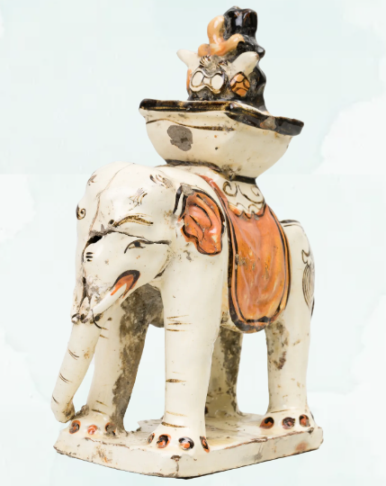 White-glazed elephant-shaped incense holder with black and brown decorations, Ming Dynasty (1368-1644), from the collection of the Henan Provincial Institute of Cultural Heritage and Archaeology [Photo/Official WeChat account of the China Grand Canal Museum]