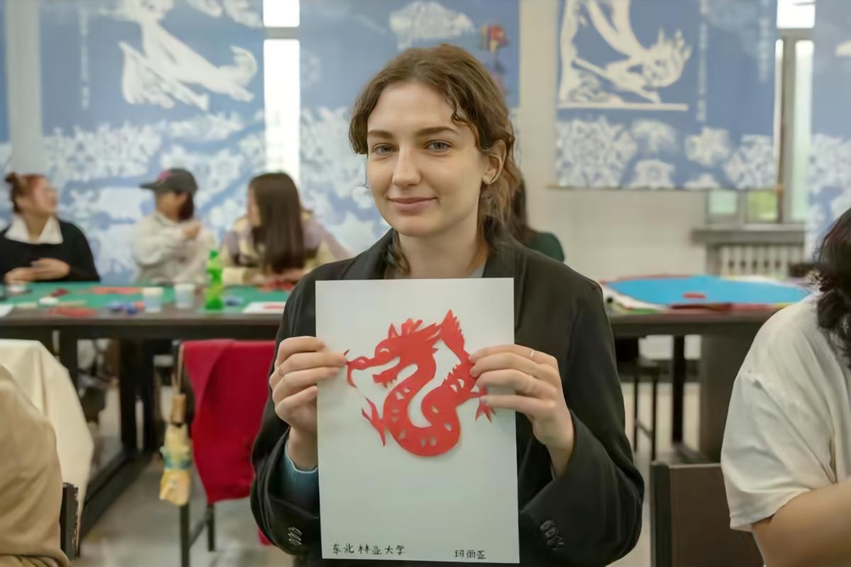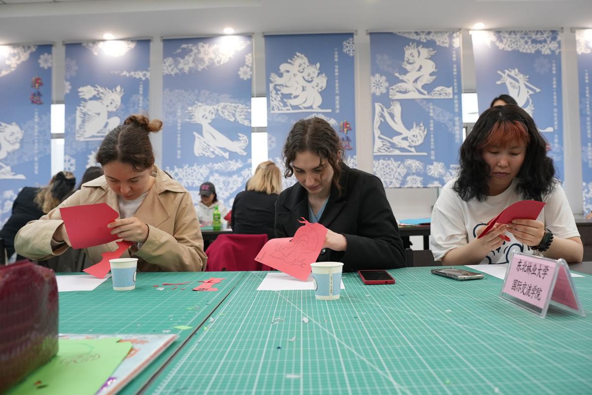 "I had seen the paper-cutting works of Heilongjiang at the international cultural festival heritage exhibition at our university before," said Bystrova Anastasiia, a doctoral student from Northeast Forestry University. "It's so meaningful to have the opportunity to understand Chinese traditional paper-cutting art with my classmates and to try it myself."