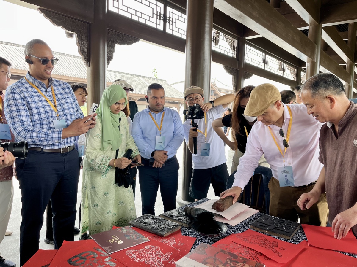 As part of the event, envoys from nine countries — including ambassadors to China from Argentina, Cambodia, Honduras, Nepal, Nicaragua and Pakistan; the minister from Germany; and counselors from Serbia and Singapore - kicked off a four-day visit to Chongqing on Thursday. They visited several districts in Chongqing such as Yuzhong, Liangping, Fuling and Dazu to experience the city's unique landscape, culture and industries.