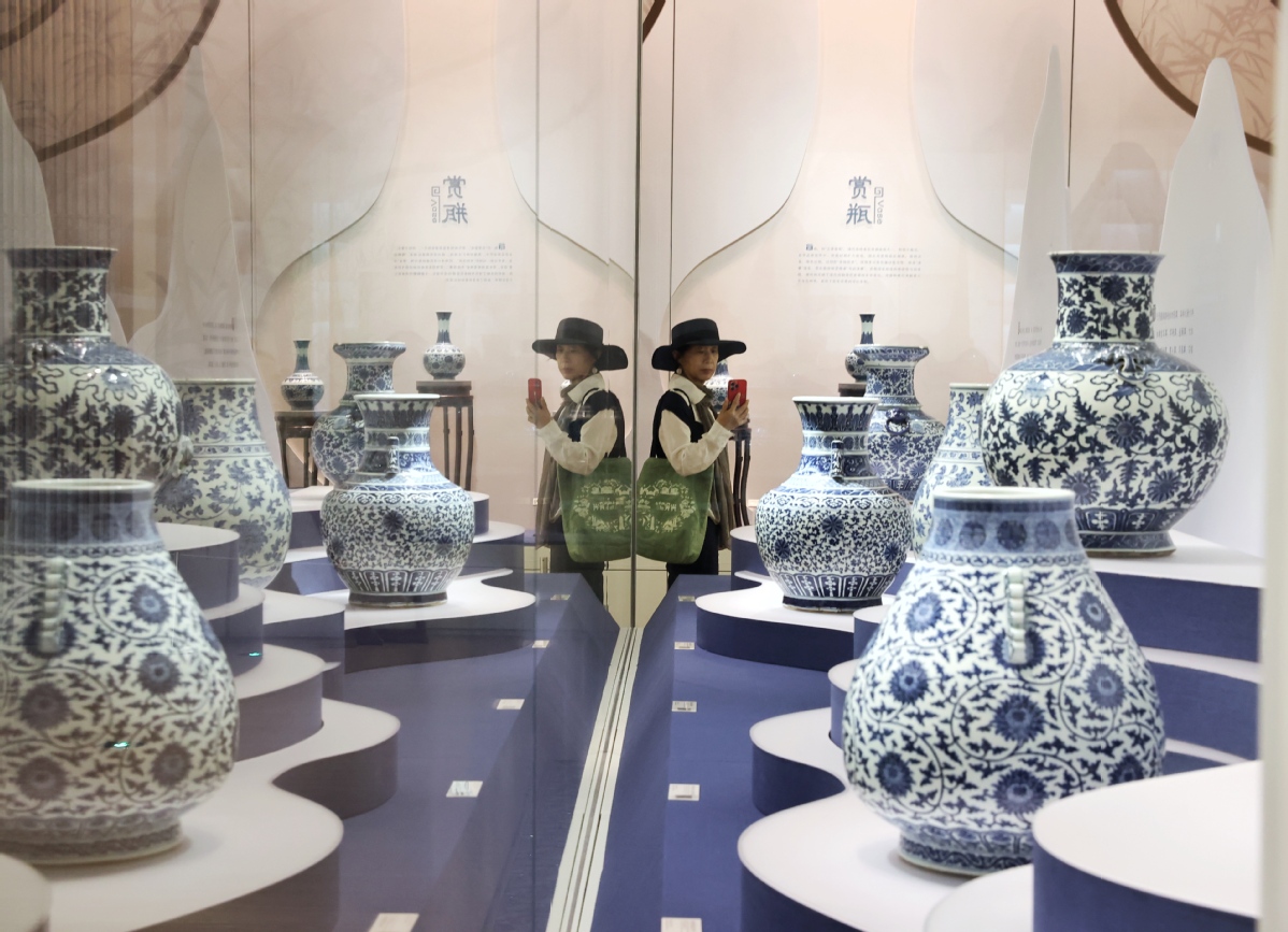 A visitor takes photos of the cultural relics at the Grand Canal Museum of Beijing in Beijing on May 18, 2024. [Photo by Jiang Dong/China Daily]