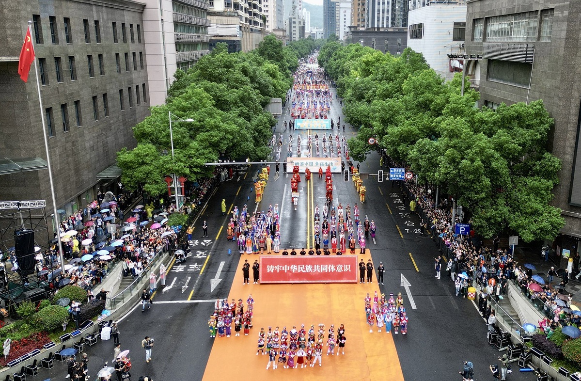 More than 3,000 people from different parts of southwestern China's Guizhou province parade the streets of Guiyang, its capital city, on the eve of China Tourism Day, which falls on Sunday. [Photo by Zhu Xingxin/chinadaily.com.cn]