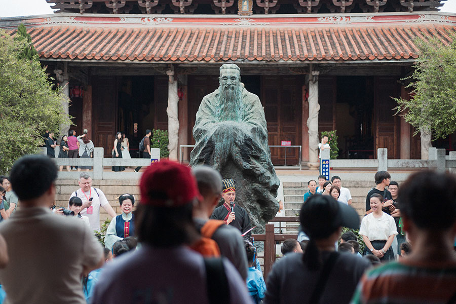 People visit the Confucian Temple in the Zhangzhou Ancient City. [Photo by Jeremy Grinan/provided to chinadaily.com.cn]