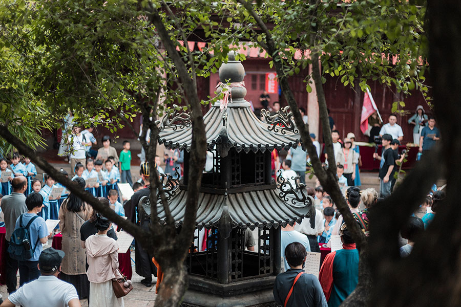 People visit the Confucian Temple in the Zhangzhou Ancient City. [Photo by Jeremy Grinan/provided to chinadaily.com.cn]