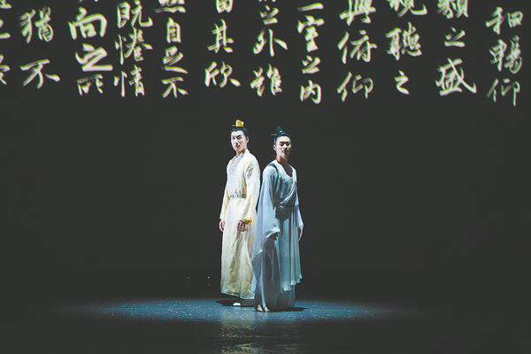 In the dance drama, the young man also travels to the Tang Dynasty. Through a solo dance by Zhang Aoyue, who plays the role of the emperor, audiences witness the inner thoughts of the emperor, who expresses his fondness and respect for Wang Xizhi and Lantingji Xu.