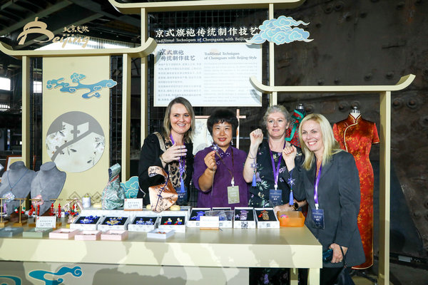 Foreign guests to the conference take group photo with a Chinese artist. [Photo provided to China Daily]