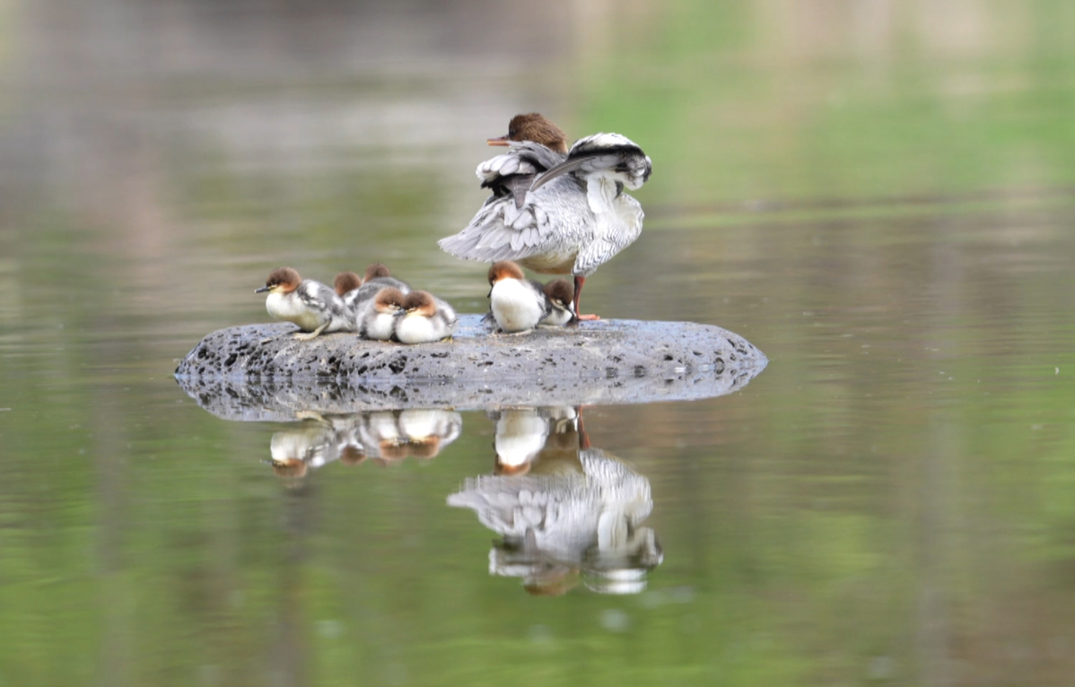 In Jilin’s Changbai Mountain in May, grass grows, trees sprout, and everything thrives. Tender green leaves, soft water plants, and clear streams create a vibrant scene. What is even more delightful is that the young Chinese merganser ducklings bravely jump down from high trees, following their "mother" as they forage and play joyfully in the springtime streams. This perfectly showcases the beautiful parallels between humans and nature.