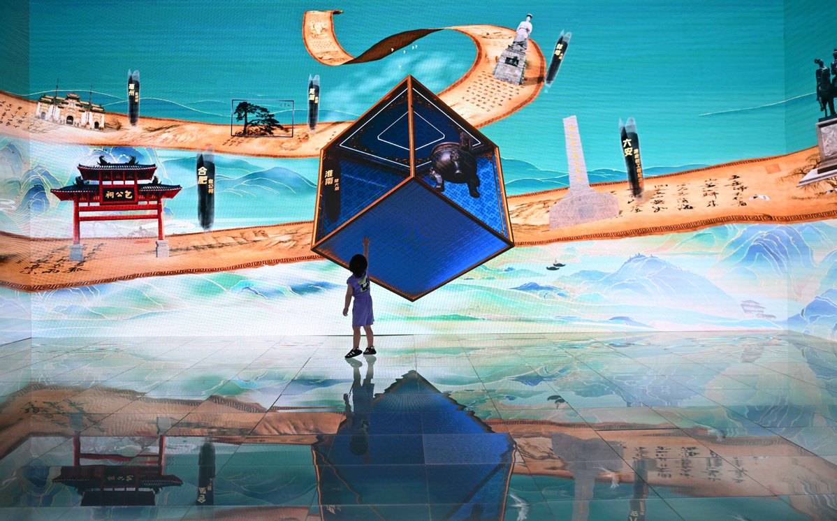 A child visits a 3D exhibition area at the 20th ICIF in Shenzhen, South China's Guangdong province, May 24, 2024. [Photo/Xinhua]