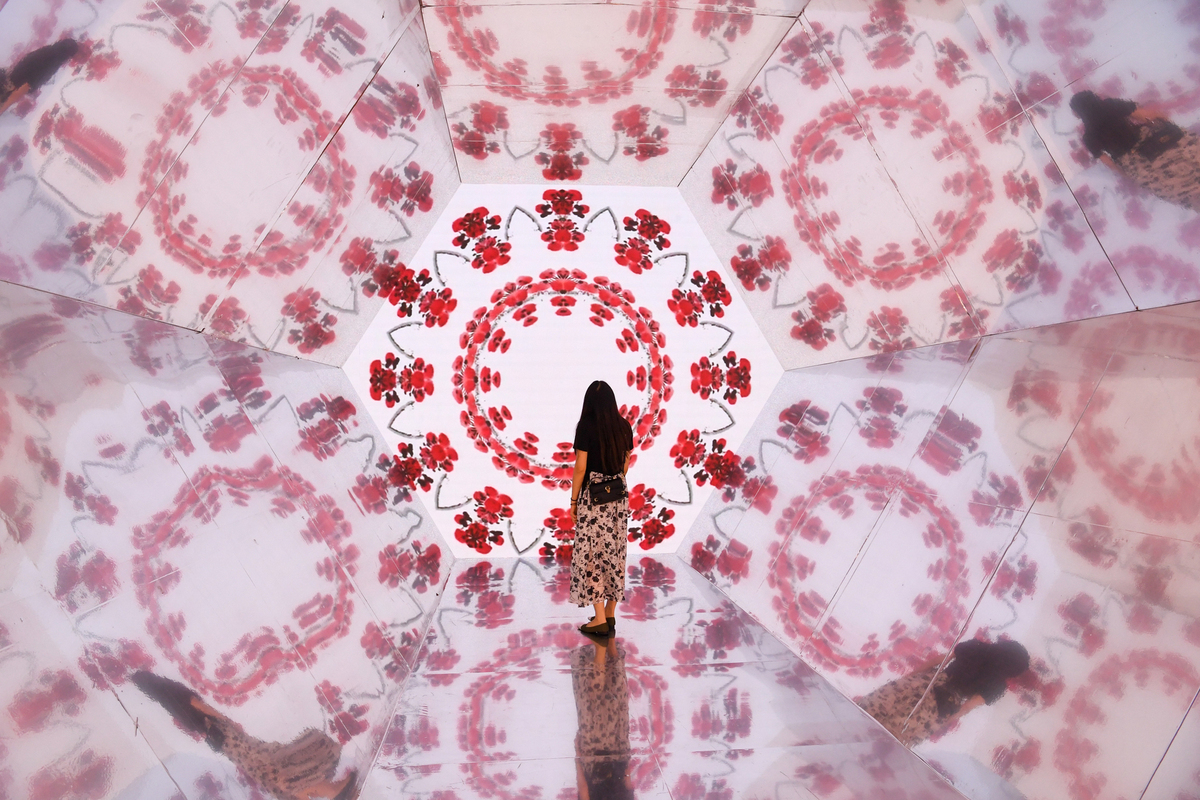 A woman visits an installation at the 20th ICIF in Shenzhen, South China's Guangdong province, May 24, 2024. [Photo/Xinhua]