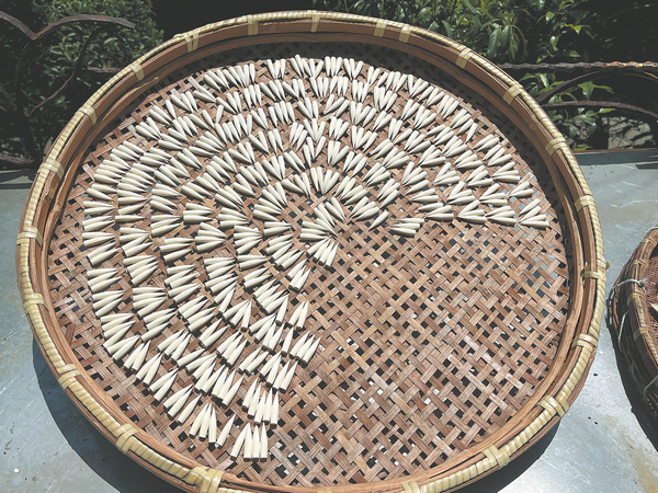 Drying is one of the 128 steps in the crafting process of Huzhou writing brushes. YANG YANG/CHINA DAILY
